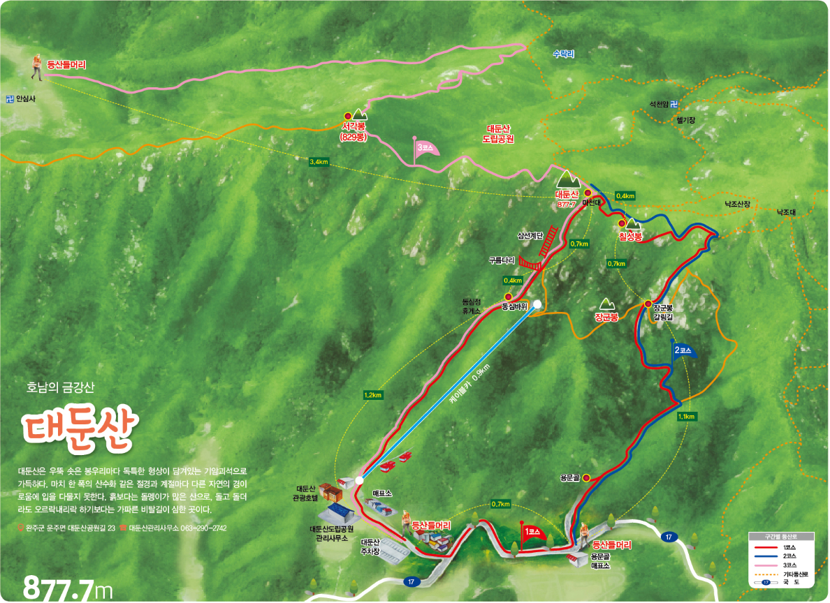 - 3코스 : 안심사→주능선안부→829m봉→마천대→주차장 (6.3km, 4시간30분)
