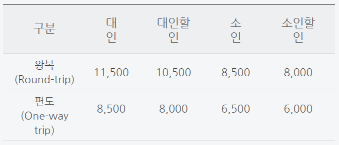 - 탑승 당일 순차적으로 발권이 가능하며, 사전예약은 불가합니다. (클린카드 사용 불가)