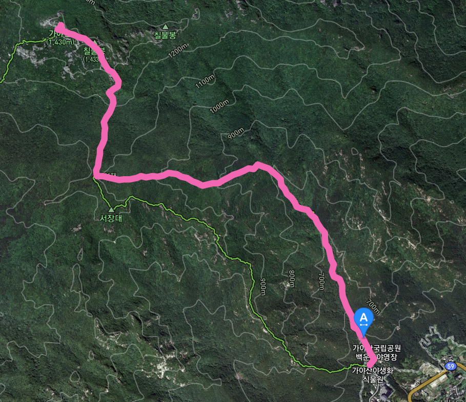 등산코스 : 백운동 탐방지원센터 → 서성재 → 칠불봉 → 상왕봉(가야산 정상)