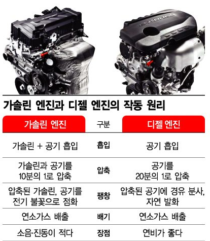 내연기관은 크게 가솔린(휘발유)과 디젤(경유)을 사용하는 엔진으로 분류됩니다.가솔린 엔진의 경우 위에서 소개해드린 것과 같이 15,000km 주기로 교환하시면 되고, 디젤은 가솔린보다 긴 20,000km 주기로 엔진오일을 교환해 주시면 됩니다.(사용 기간은 가솔린과 마찬가지로 1년에 1회 이상 교환)