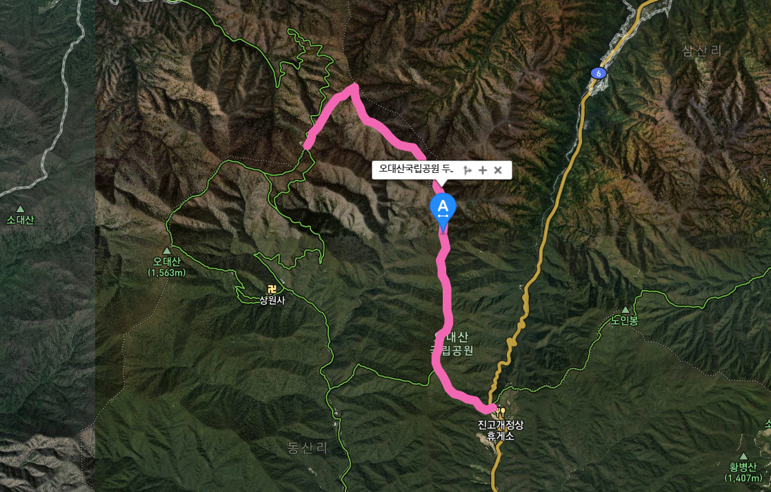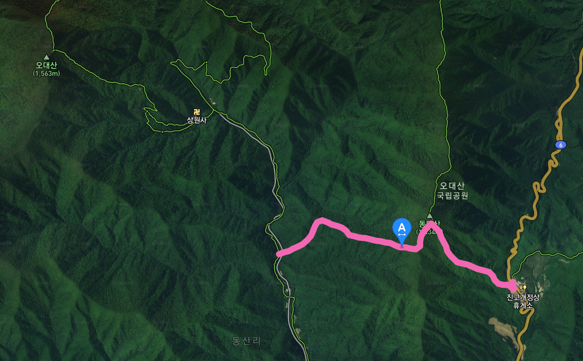 등산코스 : 진고개 → 동대산 → 동피골