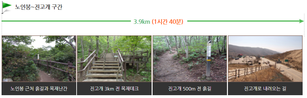 이 구간은 목재데크와 철재교량이 다수 존재하는 오르막 길로 겨울철에는 미끄러지지 않도록 특히 조심해야 합니다.
