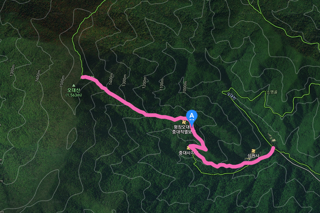 등산코스 : 상원사 → 중대사 → 적멸보궁 → 비로봉