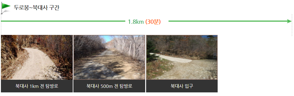 두로령에서 북대사까지는 20분 정도 소요되며 전구간이 내리막길로 되어있습니다.
