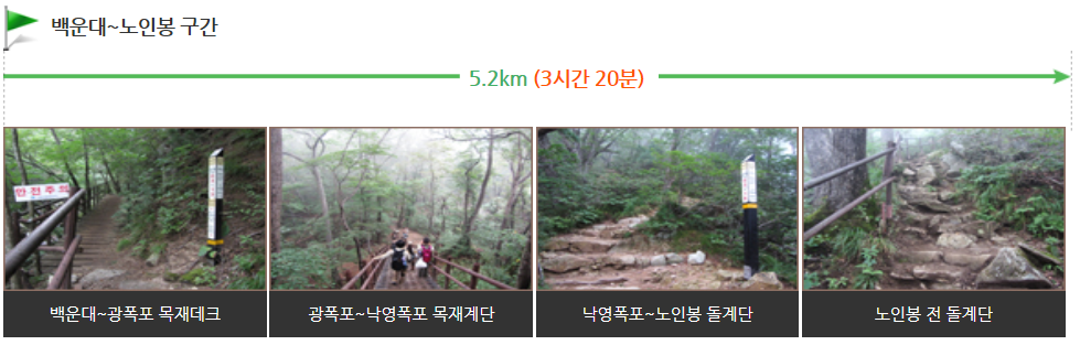 백운대에서 노인봉까지 오르는 길은 5.2km로 소요시간은 약 3시간20분 정도 소요됩니다.