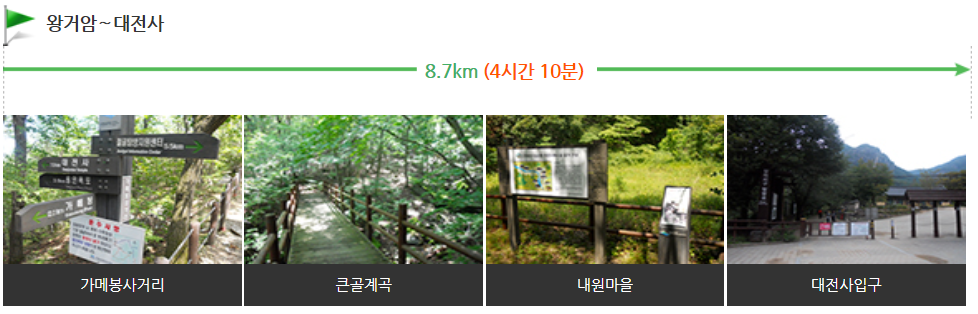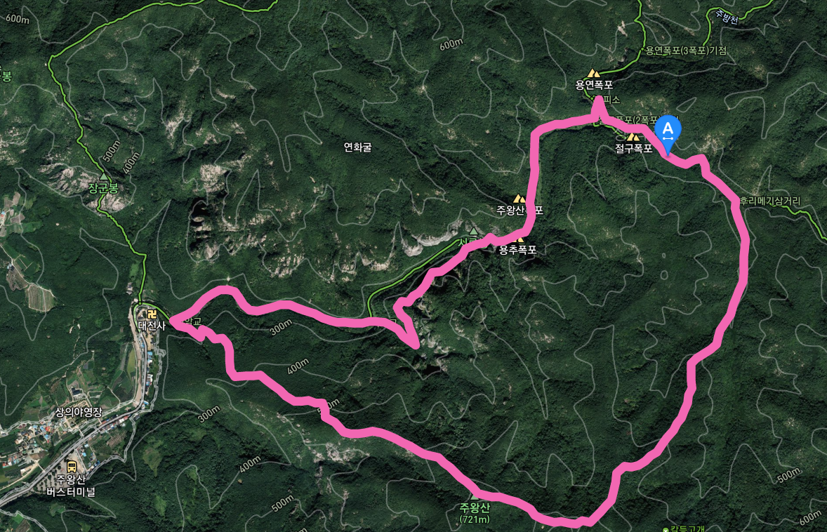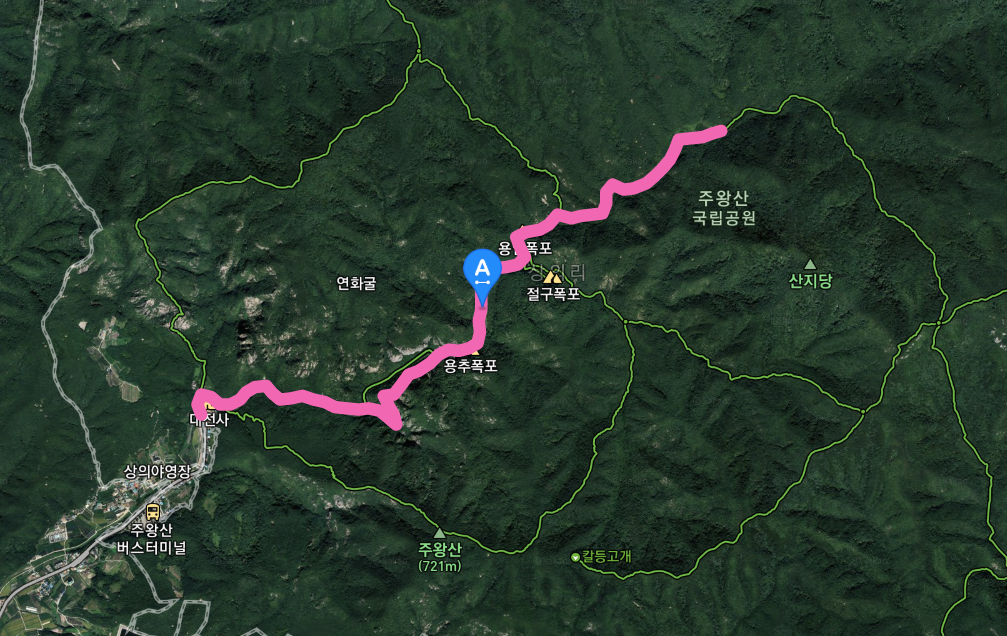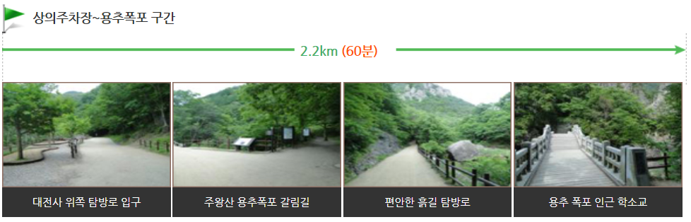 등산코스 : 상의주차장 → 대전사 → 용추폭포 → 용연폭포 → 내원동 → 상의주차장