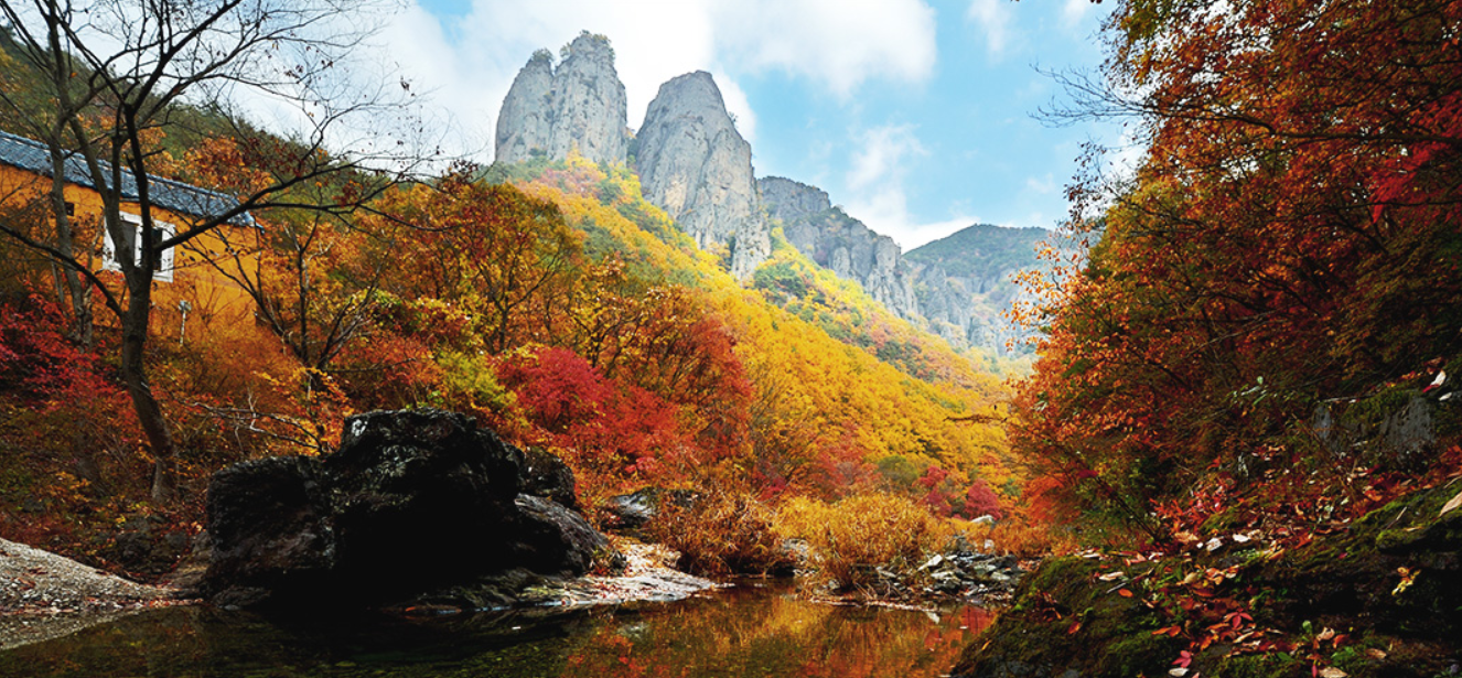 주왕산 주왕계곡 코스는 특히 10월 중순부터 11월 초순까지 가을 단풍 감상에 적합한 코스로 기암괴석과 단풍이 어우러져 내장산과 더불어 단풍감상의 최적 장소로 추천드립니다.