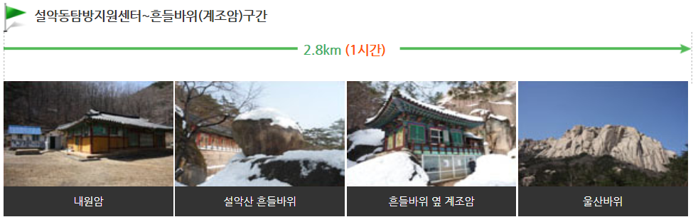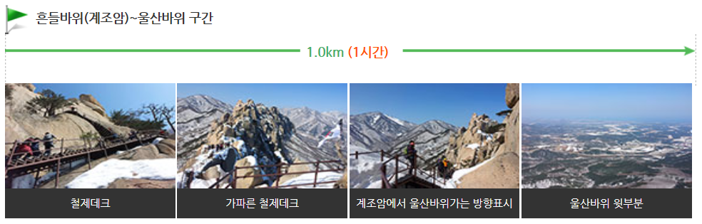 단, 흔들바위에서 울산바위로 올라가는 코스는 계단이 많고 다소 경사가 있는 점 탐방에 참고하시기 바랍니다.