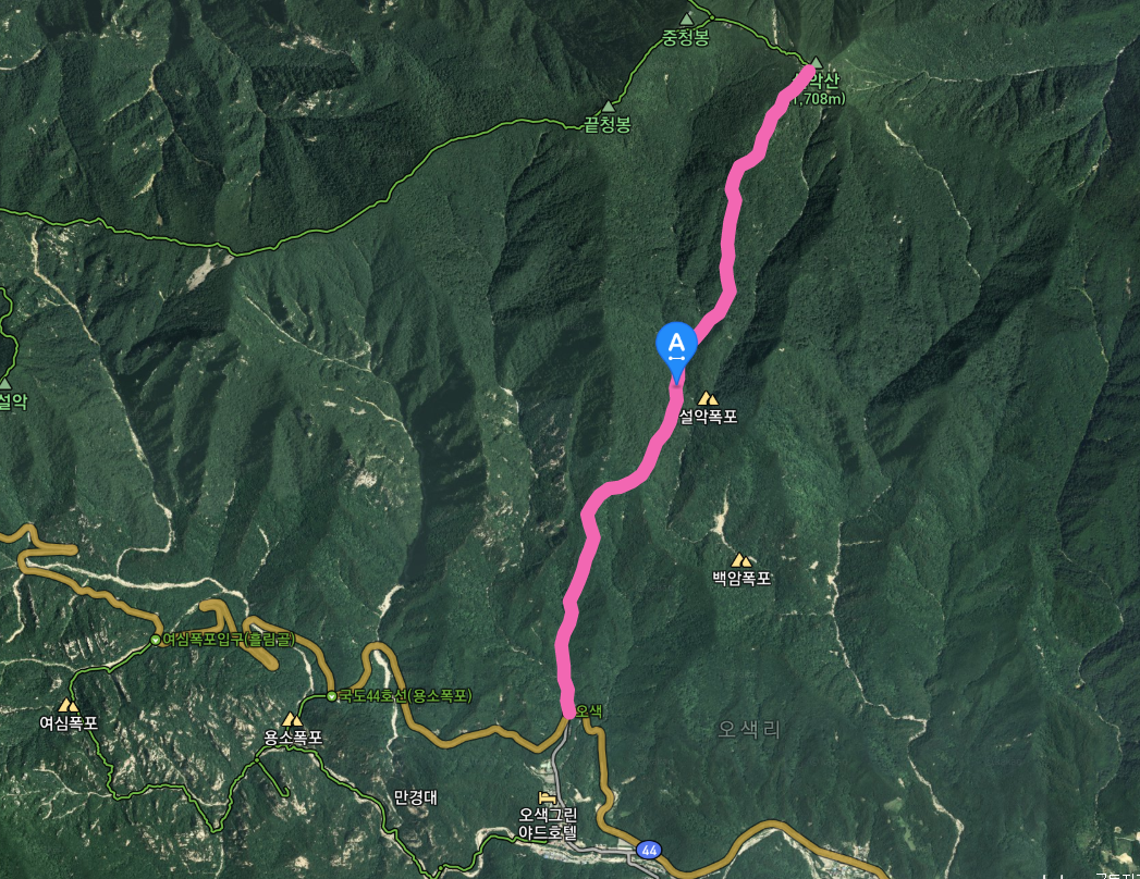 대청봉 등산코스 : 오색 → 설악폭포 → 대청봉