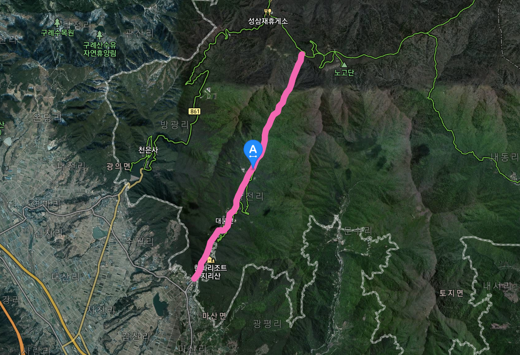 유평탐방지원센터에서 새재마을까지 부담없는 계곡 트래킹코스이며, 화엄사에서 대원사까지 지리산 종주 코스로서 잘 알려진 등산코스 입니다.