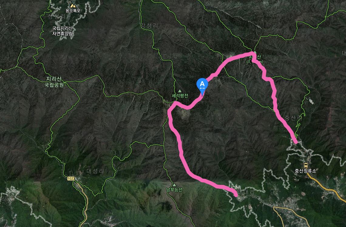 지리산 종주(유평) 코스 : 1박 2일 코스로 거리는 약 21.5km이며, 등산 난이도는 '상' 입니다.