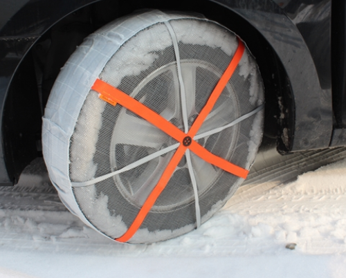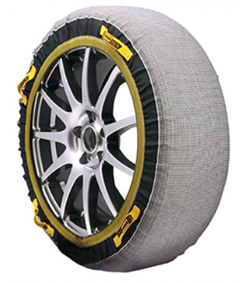 마찰계수가 높은 직물을 사용하여 만든 스노우 체인으로, 타이어 전체를 감싸듯 씌워 사용하는 제품입니다.