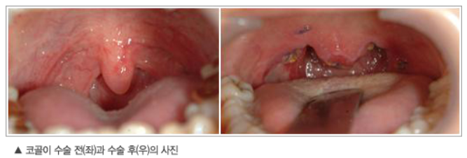 수술적 치료법은 코골이 환자의 약 15%정도만 필요하며, 코골이 수술의 경우 코골이의 원인이 되는 처진 목젖 분위를 떼어네거나, 팽팽하게 탄력이 생길 수 있도록 만드는 수술 기법입니다.