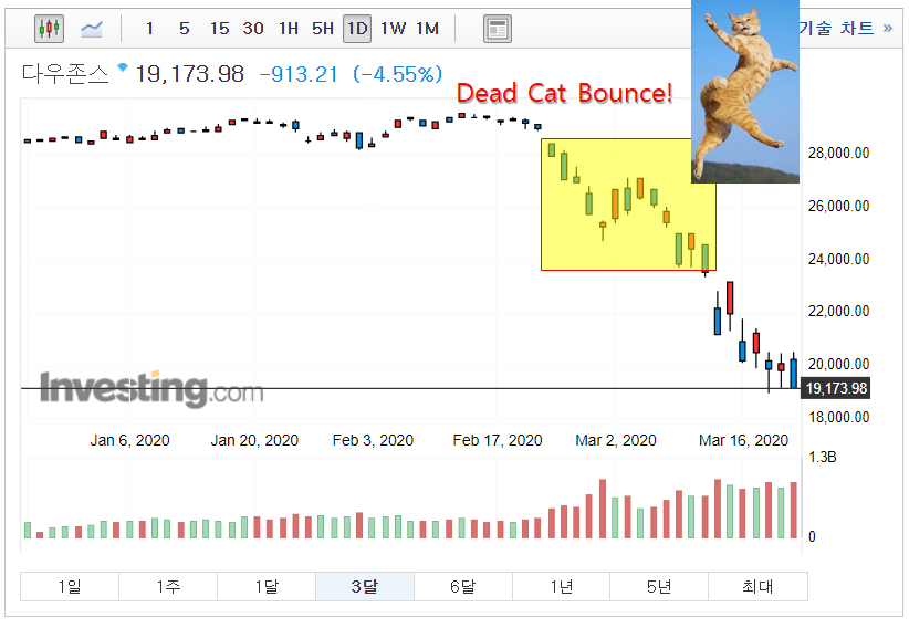 작금의 시장 상황을 보면 데드캣 바운스의 고양이가 가장 잘 어울릴 것 같네요.