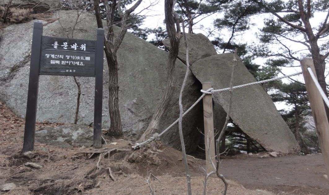 돌문바위를 세 바퀴를 돌면 청계산의 정기를 받을 수 있다고 합니다.