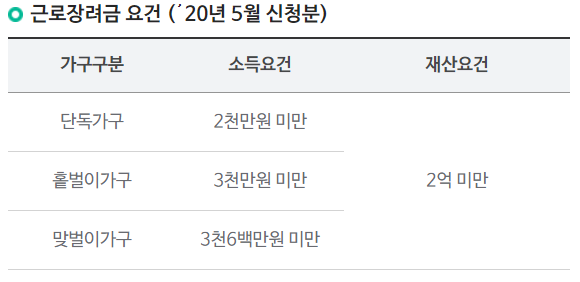 근로장려금 자격요건