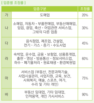 * 근로장려금 사업소득 업종별 조정률