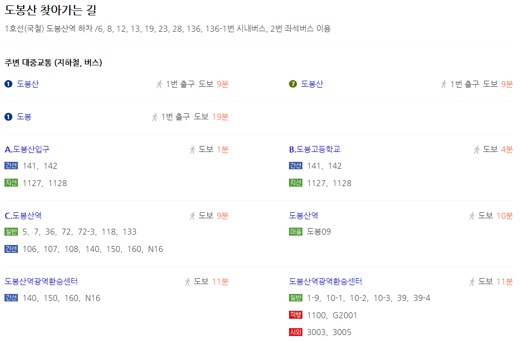 - 등산로 입구 가는법 : 지하철 1, 7호선 도봉산역 1번 출구에서 도보 15분