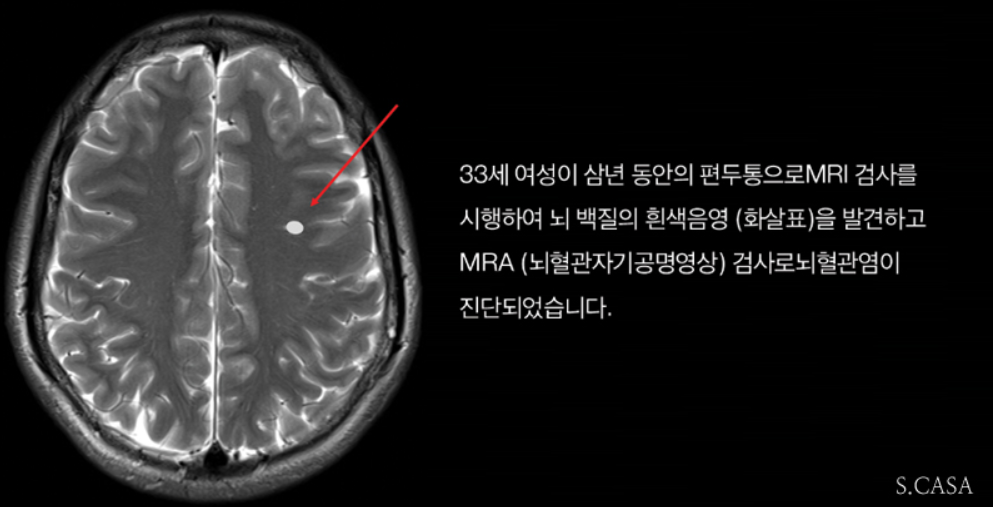 - 중등도 혹은 심한 두통으로 일상생활에 지장을 주는 경우가 흔합니다.