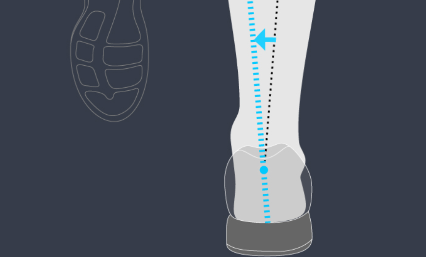 - 발이 지면과 접촉하는 방식 : 발이 발뒤꿈치 안쪽으로 착지한 다음 안쪽으로 과도하게 기울어지면서 (내전이 이루어져) 발 볼이 아닌 안쪽 부분으로 무게가 전달됨