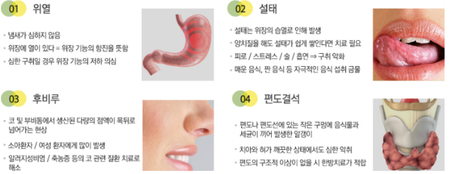 - 만성 비부동염, 비염, 편도염, 편도결석 같은 이비인후과 질환